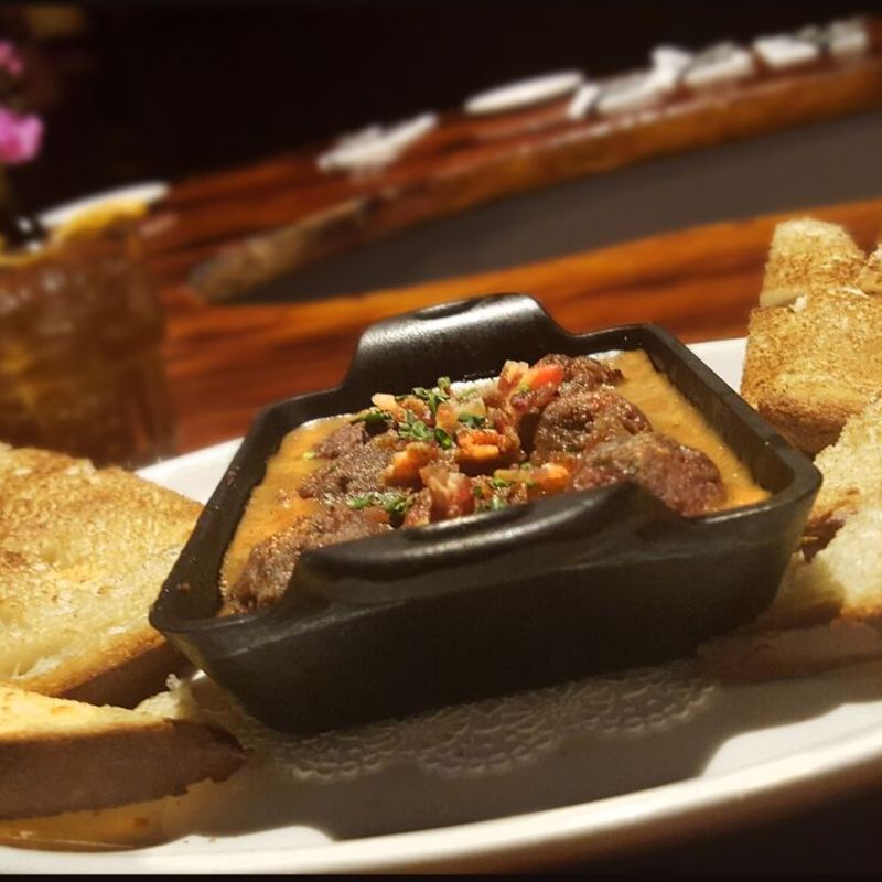 filet, whiskey peppercorn, chives, bacon, brioche toast